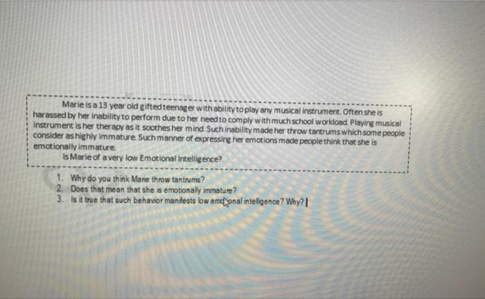 Solved Marie Is A 13 Year Old Gifted Teenager With Ability Chegg Com